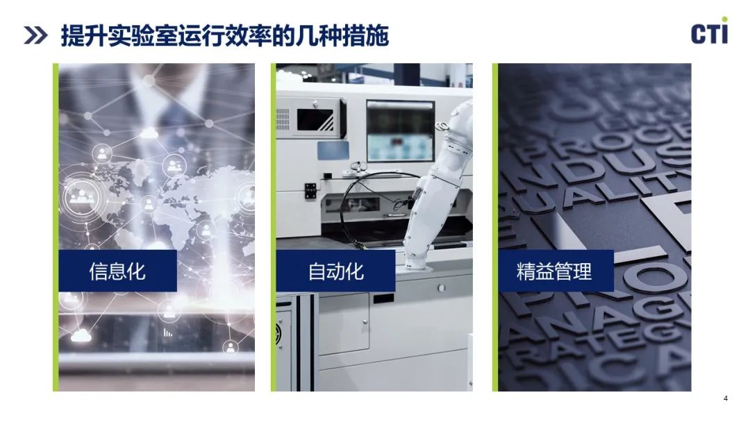 当下的TIC行业竞争同质化日趋严重,更高效的运营效率成为获取竞争优势的关键。张婵从信息化,自动化,精益管理三个方面分享了CTI华测检测在提升实验室运行效率方面的一些探索。