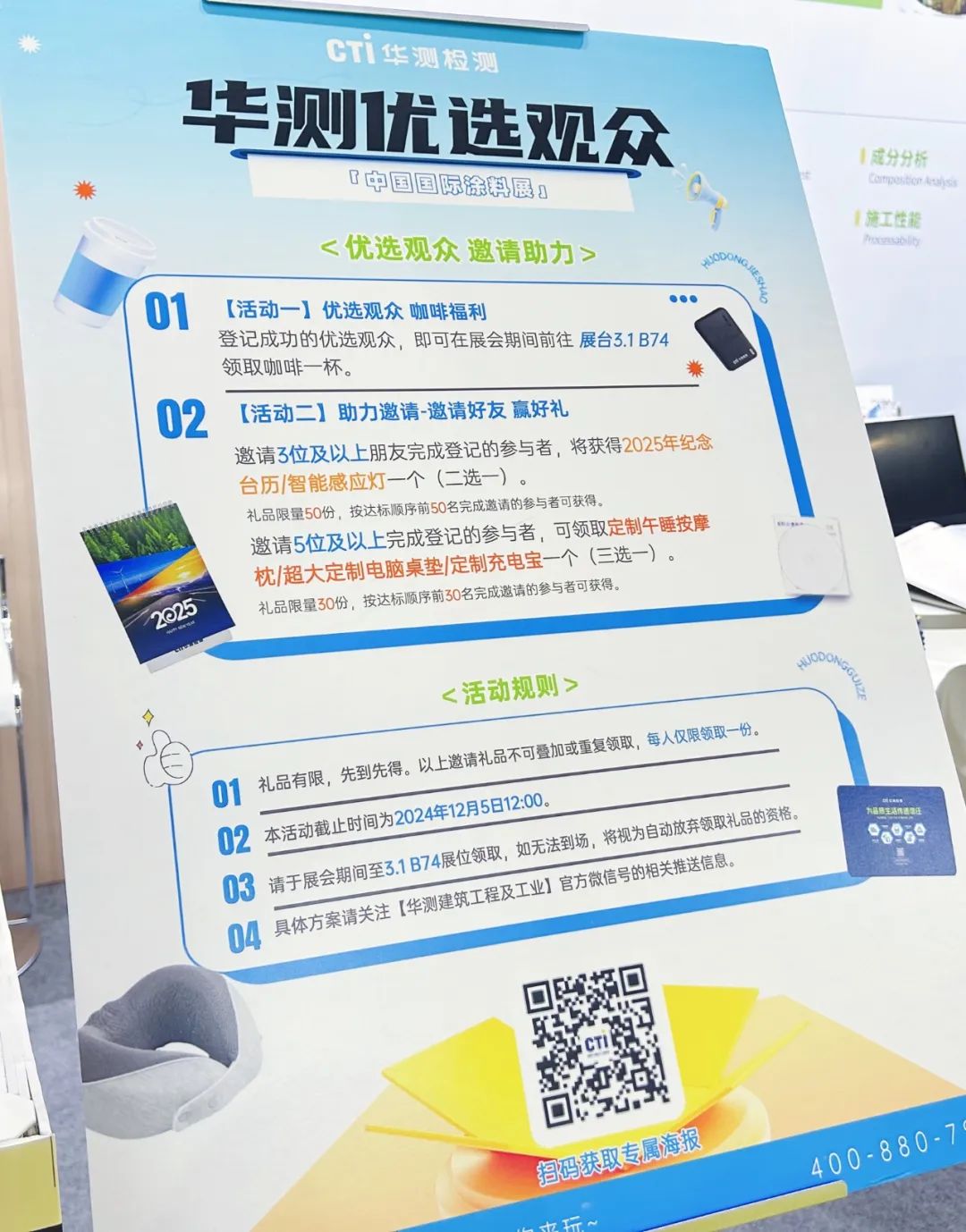 CTI华测检测通过一系列生动直观的视频演示和详尽的讲解,向参观者全面展示了其在涂料检测领域的专业能力和技术实力。面对参观者的各类疑问和需求,现场工作人员耐心细致地解答,展现了其专业、高效的服务态度。