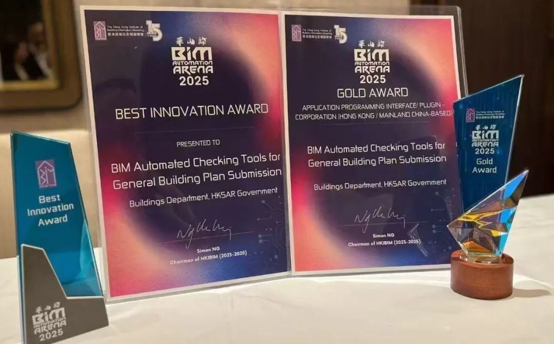 近日,CTI华测检测的BIM专业服务团队,凭借着为香港屋宇署与渠务署量身定制的研发项目,在2025年香港建筑信息模拟学会(HKIBIM)「华山论 BIM」大赛中脱颖而出,一举斩获“应用程序编程接口/插件组别”金奖、优异奖,并荣膺大赛唯一“最佳创新奖”,成为本届赛事最大赢家之一。这不仅是对团队实力的认可,也彰显了其在BIM技术的深度应用上的领先地位。