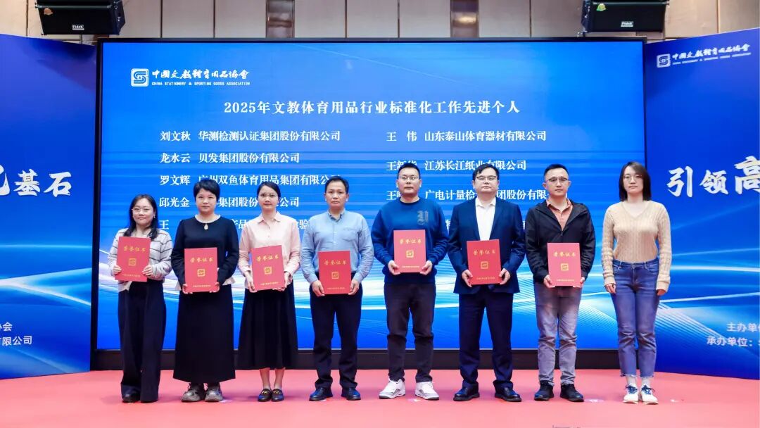 12月9日至10日,以“强化标准引领促进高质量发展”为主旨的2025年全国文具运动器材标准化技术委员会年会暨文体用品行业质量标准培训班在广东深圳顺利召开,此次会议及培训由 中国文教体育用品协会 主办, 华测检测 认证集团股份有限公司(简称CTI 华测检测 ,股票代码300012)承办。会上,CTI 华测检测 凭借在文体用品标准化领域的突出贡献,荣获“中国文教体育用品行业标准化工作先进单位”荣誉称号,成为获奖单位中唯一的民营第三方检测认证机构,CTI 华测检测 在文体用品标准化领域长期深耕荣获权威肯定,彰显民营第三方机构标杆力量。同时,CTI 华测检测 集团研究院标准中心主任刘文秋荣获“中国文教体育用品行业标准化工作先进个人”。