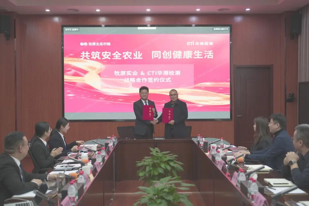 2025年12月30日,CTI华测检测与牧原集团战略合作签约仪式在牧原集团总部隆重举行。本次仪式以“共筑安全农业,同创健康生活”为主题,标志着双方在产品研发、精准农业、质量检测领域的深度合作正式启动。CTI华测检测农产品产品线总经理李俊超、牧原集团有机肥总经理张鹏伟等双方代表共计十余人出席仪式。