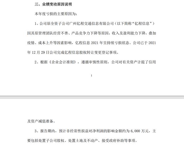 新宁物流将亏损原因归为此前收购的广州亿程交通信息有限公司产品竞争力下降、收入及盈利能力下降、持续亏损,资产减值等因素。