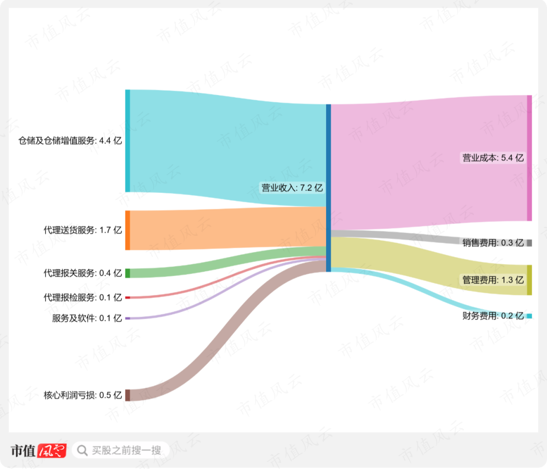 这一年,公司99.26%营收来自物流服务和其相关服务,核心利润率为-8.14%。