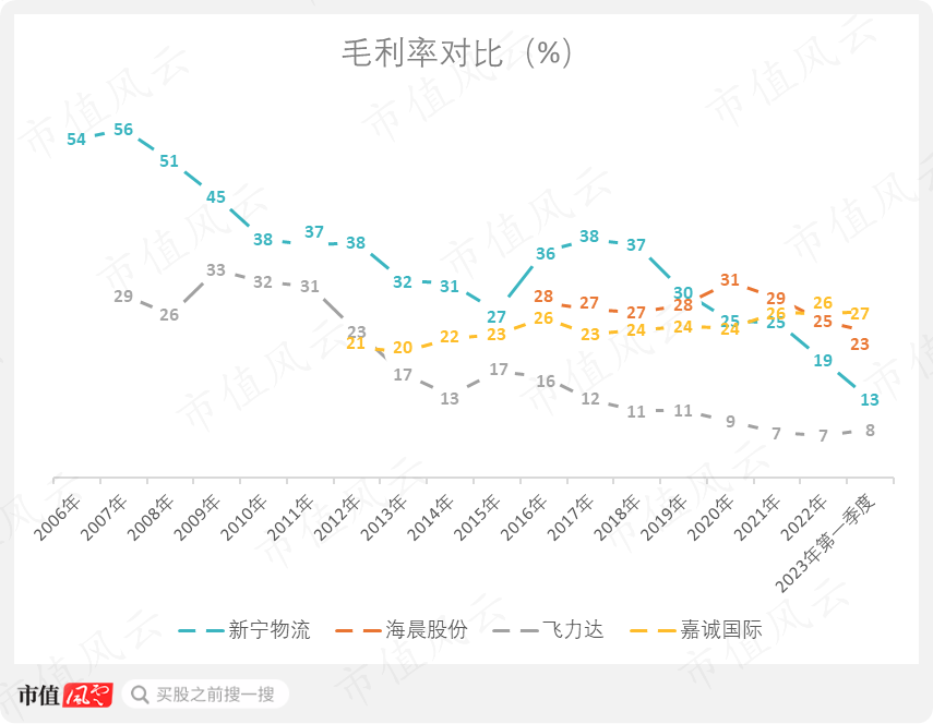 而回顾历史,2006-09年新宁物流甚至曾有直逼生物医药行业的毛利率,远超三位同行的平均毛利率,一度曾达到56%。