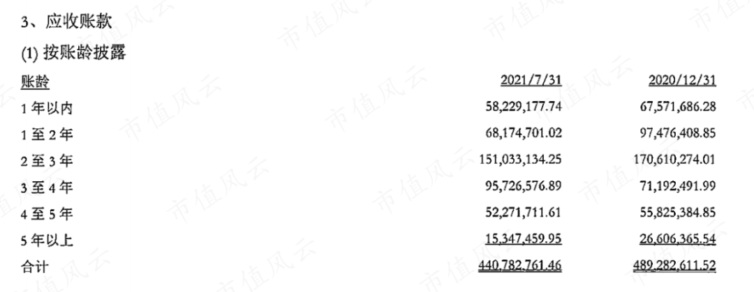 按新宁物流披露的审计报告,截至2021年7月31日,亿程信息合计应收账款4.41亿,合计应付账款0.58亿。