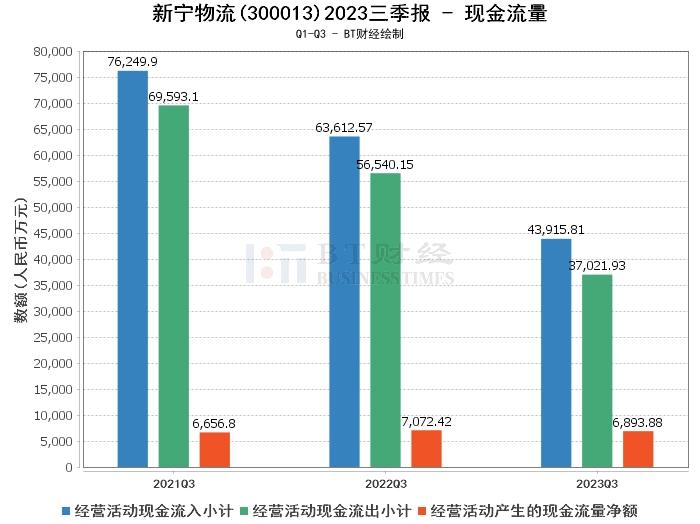 在现金流量方面,新宁物流年初至报告期末的经营活动产生的现金流量净额为6893.88万元,较上年同期略有下降,降幅为2.52%。这主要是由于本期收入下降,导致销售商品、提供劳务收到的现金以及购买商品、接受劳务支付的现金均有所减少。