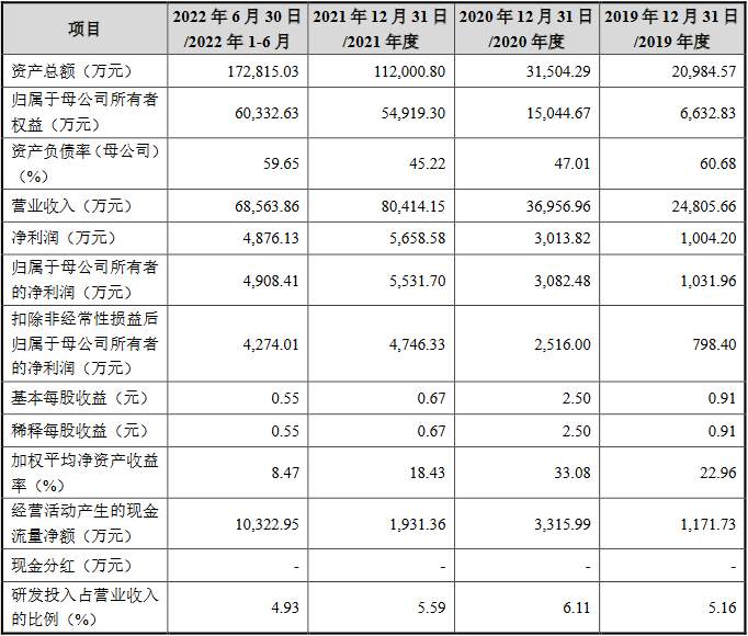 2019年、2020年、2021年和2022年1-6月,沃太能源实现营业收入分别为24,805.66万元、36,956.96万元、80,414.15万元和68,563.86万元,实现归属于母公司所有者的净利润分别为1,031.96万元、3,082.48万元、5,531.70万元和4,908.41万元,实现扣除非经常性损益后归属于母公司所有者的净利润分别为798.40万元、2,516.00万元、4,746.33万元和4,274.01万元。