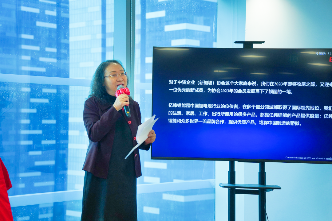 中资企业(新加坡)协会常务副会长孙念北对亿纬锂能新加坡公司的开业运营表示衷心祝贺,她指出,亿纬锂能是锂电池行业的头部企业,在多个细分领域都取得了国际领先地位。亿纬锂能在新加坡开设子公司,既体现了管理层的战略眼光,也顺应了市场发展趋势。中资企业协会将持续为亿纬锂能提供平台以协助公司与其他会员企业沟通交流、合作,助力亿纬锂能新加坡公司发展。