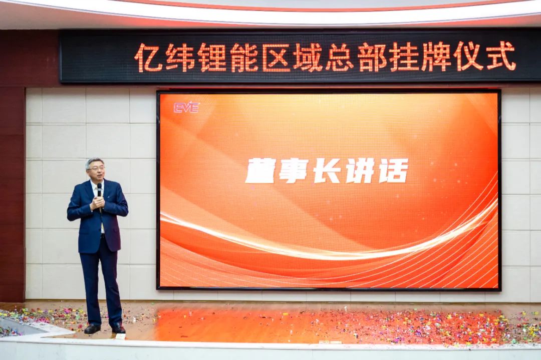 揭牌仪式上,董事长刘金成博士表示,"区域总部的成立是亿纬锂能走向全球化运营的重要一步,也是新能源行业,电池产业链为全球服务的重要历史时刻。在新的历史浪潮下,我们将继续整装出发,奋勇向前,加强技术、产品、服务能力,加强组织能力建设,构建更有活力的增长能力"。