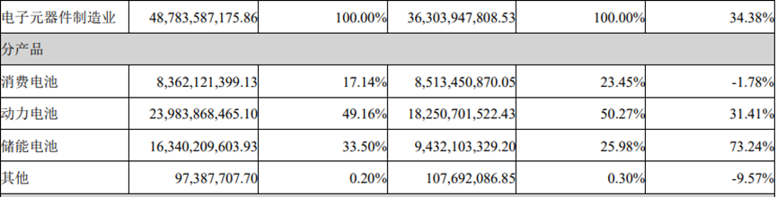 亿纬锂能在2023年,将业务分类从锂原电池业务和锂离子电池业务,修改为业务信息更为清晰的消费电池业务、动力电池业务和储能电池业务。