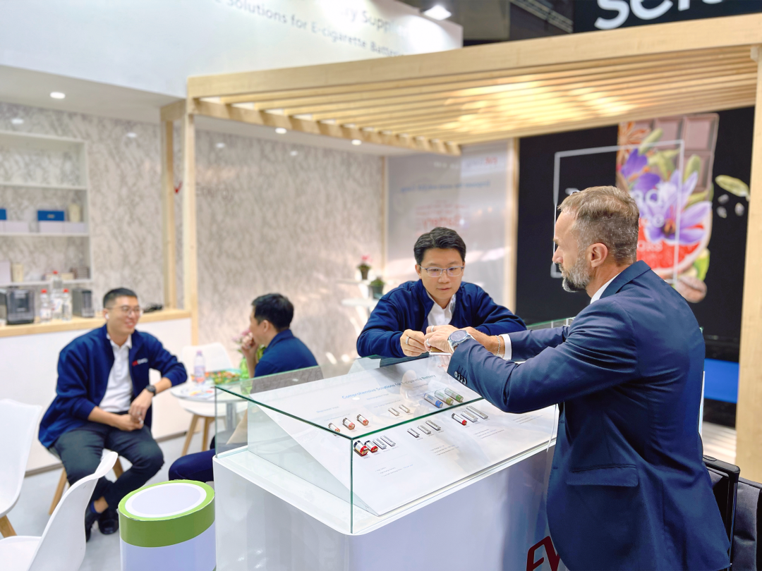 展会期间,亿纬锂能展台亮点纷呈。一次雾化器电池、二次雾化器电池、一体式HNB电池、分体式HNB电池等全矩阵产品同台亮相,以其高安全、高能量密度、长寿命、超快充、低自放电率、可拆卸等核心性能优势,吸引全球用户的广泛关注。