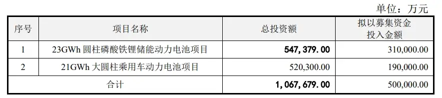 10月10日,亿纬锂能发布了向不特定对象发行可转换公司债券募集说明书的修订稿。公告显示,亿纬锂能拟发行不超过50亿的可转债。其中,31亿用于23GWh圆柱磷酸铁锂储能动力电池项目,19亿用于21GWh大圆柱乘用车动力电池项目。
