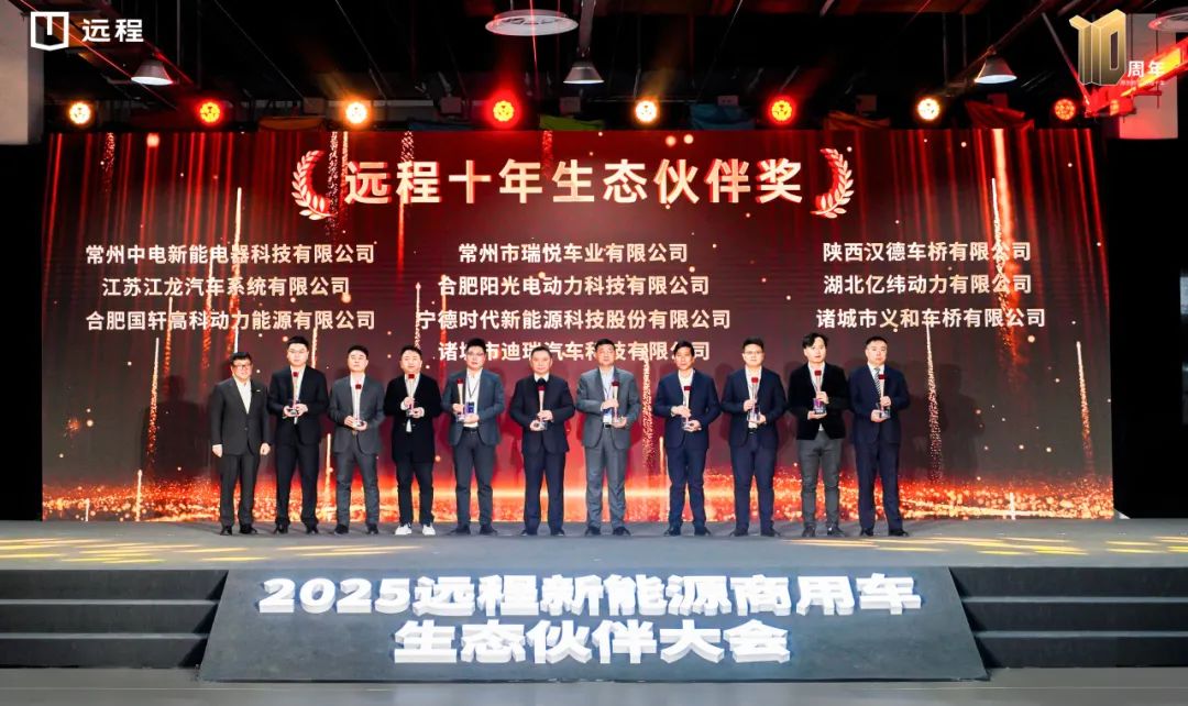 12月27日,2025远程新能源商用车集团生态伙伴大会在浙江南浔举行,亿纬锂能荣获“远程十年生态伙伴奖”和“科技远程奖”两项大奖。亿纬锂能高级副总裁朱延春、动力国内营销中心销售总监陈黎明受邀出席。