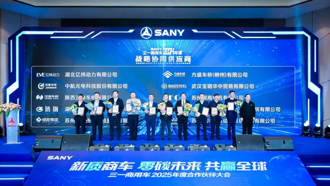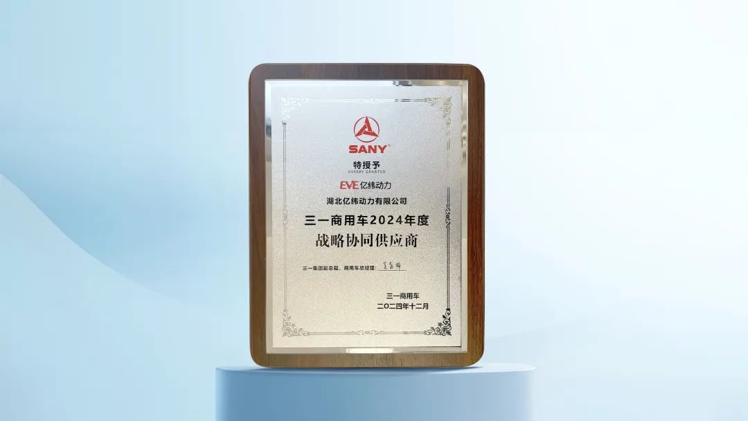 12月27日,以“新质商车?零碳未来?共赢全球“为主题的三一商用车2025年度合作伙伴大会在湖南长沙举行,亿纬锂能荣获三一商用车“战略协同供应商”奖。亿纬锂能动力国内营销中心副总裁乔杰受邀出席。