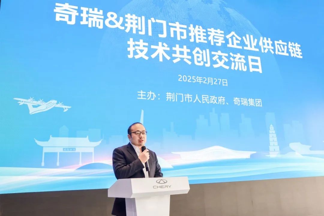 2月27日,在安徽芜湖奇瑞集团总部,由荆门市人民政府与奇瑞集团联合主办的"奇瑞荆门汽车供应链技术共创交流日"活动圆满举行。此次活动以"深度对接合作,互利共赢发展"为主题,通过搭建产业协同创新平台,组织荆门市20余家优质供应链企业与奇瑞集团开展深度技术对接,有效促进产业链上下游协同创新。荆门市政协副主席刘德舜,奇瑞汽车股份有限公司采购中心执行总监王厅,亿纬锂能动力电池系统研究院副院长徐宇虹博士,营销中心华东区域总部总经理沈光磊等政企领导共同出席。