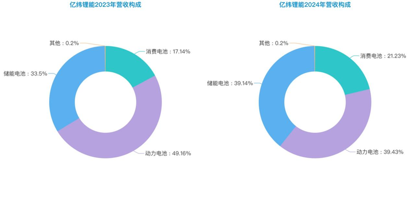 公司三大业务板块中,消费电池去年实现营收103.22亿元,占比21.23%;动力电池营收191.67亿元,占比39.43%;储能电池营收190.27亿元,占比39.14%。