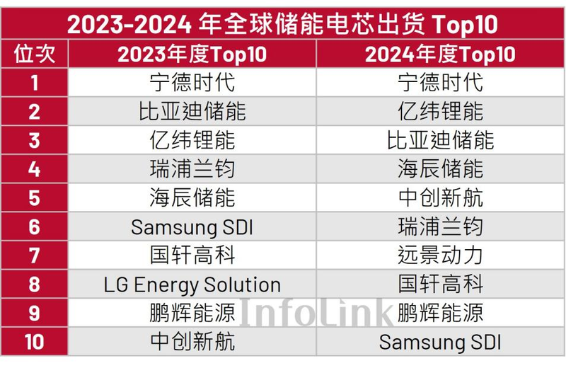 储能电池业务成为亿纬锂能去年的业绩亮点。亿纬锂能披露称,2024年全年储能电池出货量达50.45GWh,同比增幅91.90%,自2024年第二季度开始处于满产状态。据第三方机构InfoLink统计,亿纬锂能去年的储能电芯出货量超越比亚迪位居全球第二位,仅次于宁德时代。2022年与2023年亿纬锂能均排在第三位。