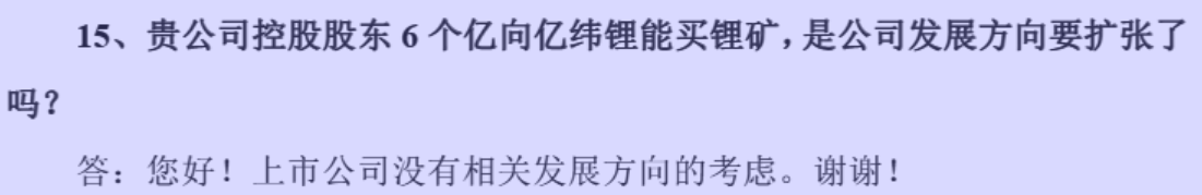 9月19日,有投资者询问硕贝德“公司控股股东6个亿向亿纬锂能买锂矿,是公司发展方向要扩张了吗?”硕贝德回应称上市公司没有相关发展方向的考虑。