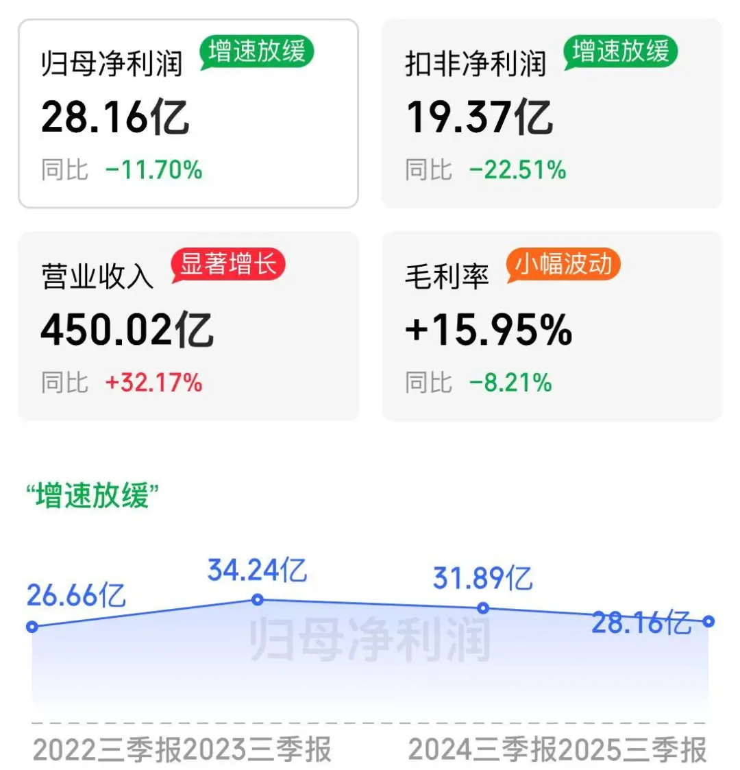 今天,亿纬锂能发布了三季度财报,数据显示,其前三季度总营收为450.02亿元,同比增长32.17%,归母净利润为28.16亿元,同比减少11.70%,增收不增利,说明行业竞争加剧,价格利润被摊薄。