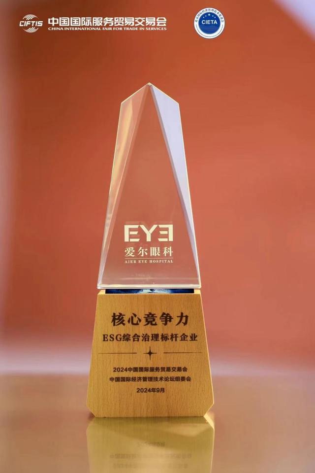 爱尔眼科荣获“核心竞争力ESG综合治理标杆企业”奖。企业供图