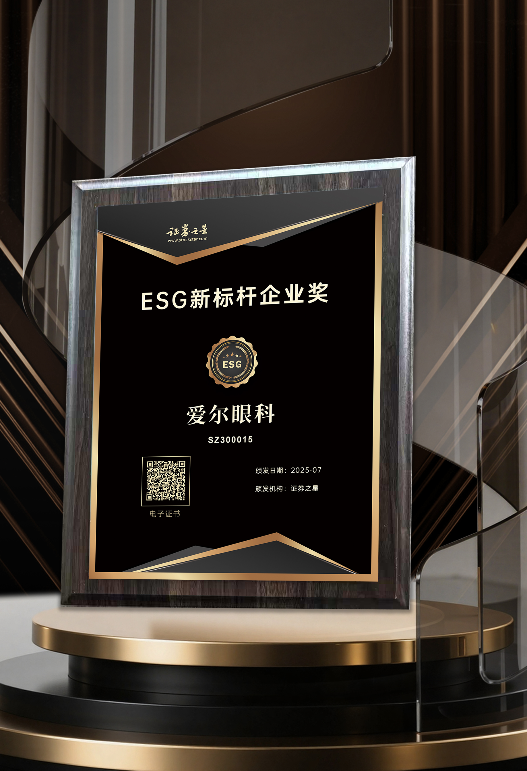 7月25日,证券之星第三届ESG新标杆企业评选结果揭晓,爱尔眼科凭借在环境、社会和治理(ESG)领域的卓越实践以及公司可持续发展潜力,荣获“ESG新标杆企业奖”并入选ESG投资价值榜。