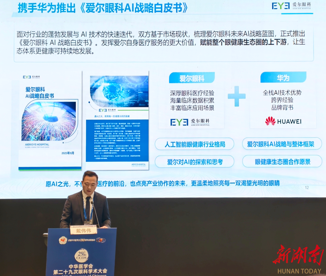 9月5日-7日,中华医学会第二十九次眼科学术大会(CCOS 2025)在杭州隆重举行,来自全国的眼科专家、学者与行业精英齐聚这场学术盛会。在眼科人工智能专题会上,爱尔眼科医院集团正式发布《爱尔眼科AI战略白皮书》,携手华为云基于市场现状勾勒企业AI战略发展蓝图,从价值场景和生态合作等角度切入,为行业提供数字化转型的标杆案例。