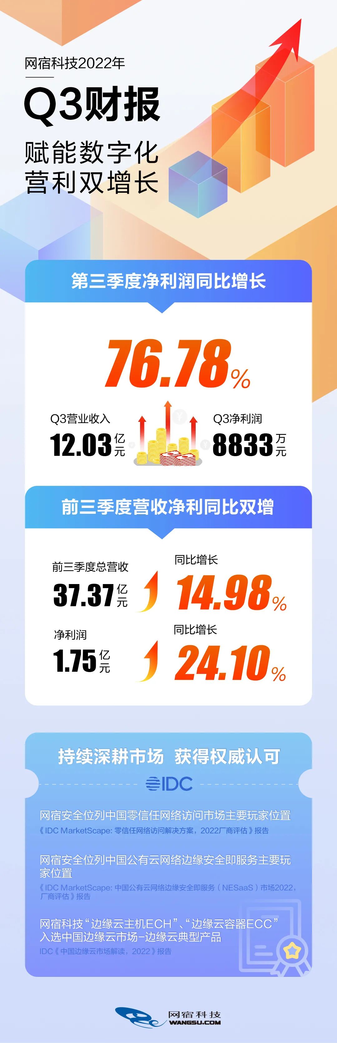 营利双增 网宿科技2022年Q3净利润同比增长76.78%