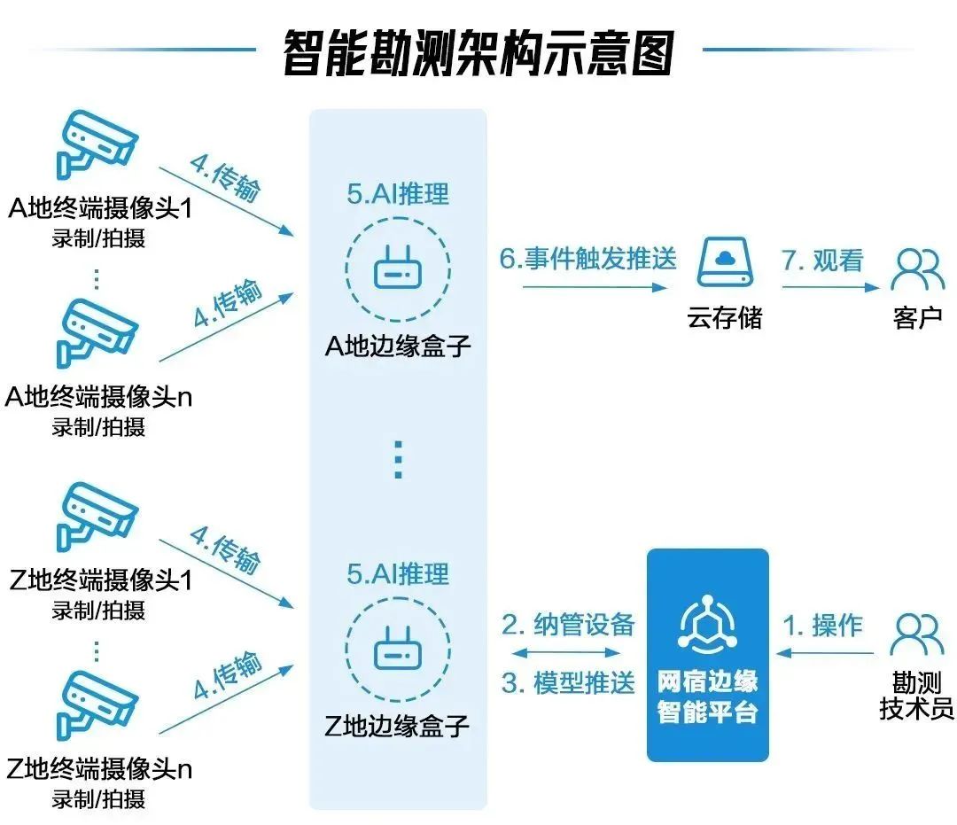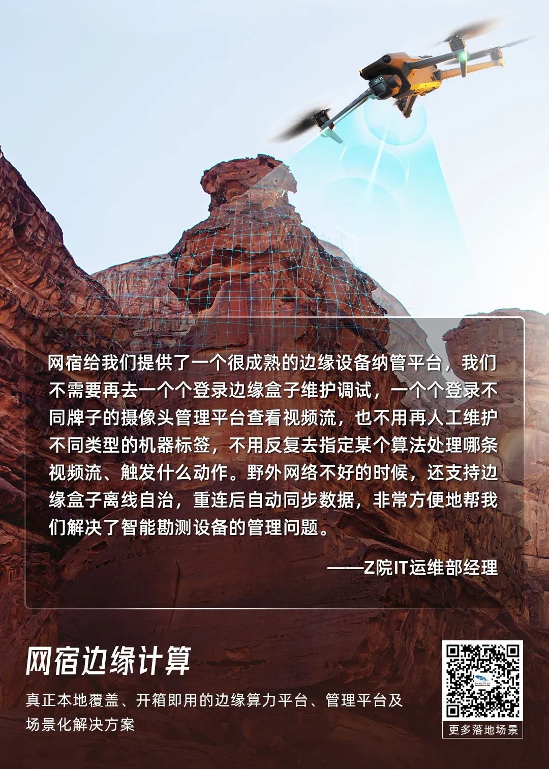 网宿科技携手国内某甲级勘测设计院,依托网宿边缘智能平台,实现了对各类边缘勘测设备的一体化纳管,使得边缘智能勘测更加灵活、高效、精准。