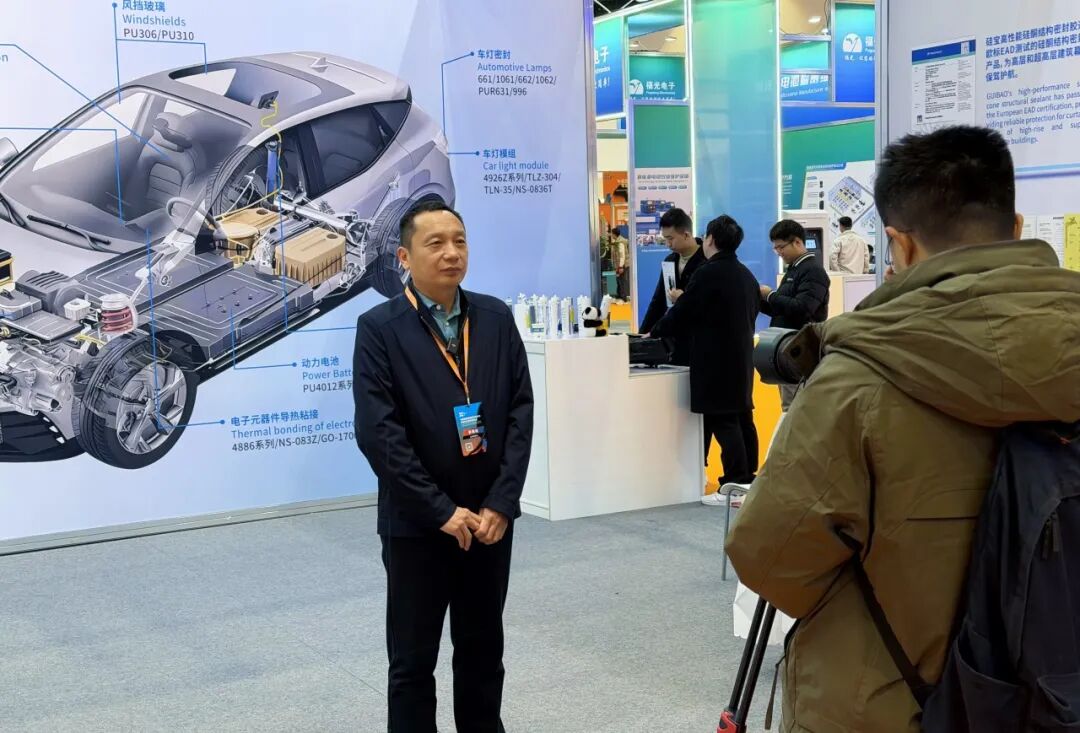 集团副总经理杨攀登接受主办方采访,他表示,硅宝科技作为国家制造业单项冠军示范企业,在全国拥有七大技术研发中心。依托领先的研发实力,公司在新能源汽车产业发展初期,便提前布局、持续深耕,逐步构建起覆盖汽车制造全流程的胶粘剂产品体系,确立了在车用胶粘剂领域的领军地位。