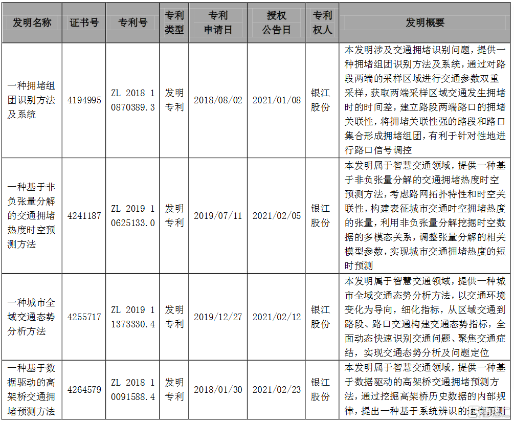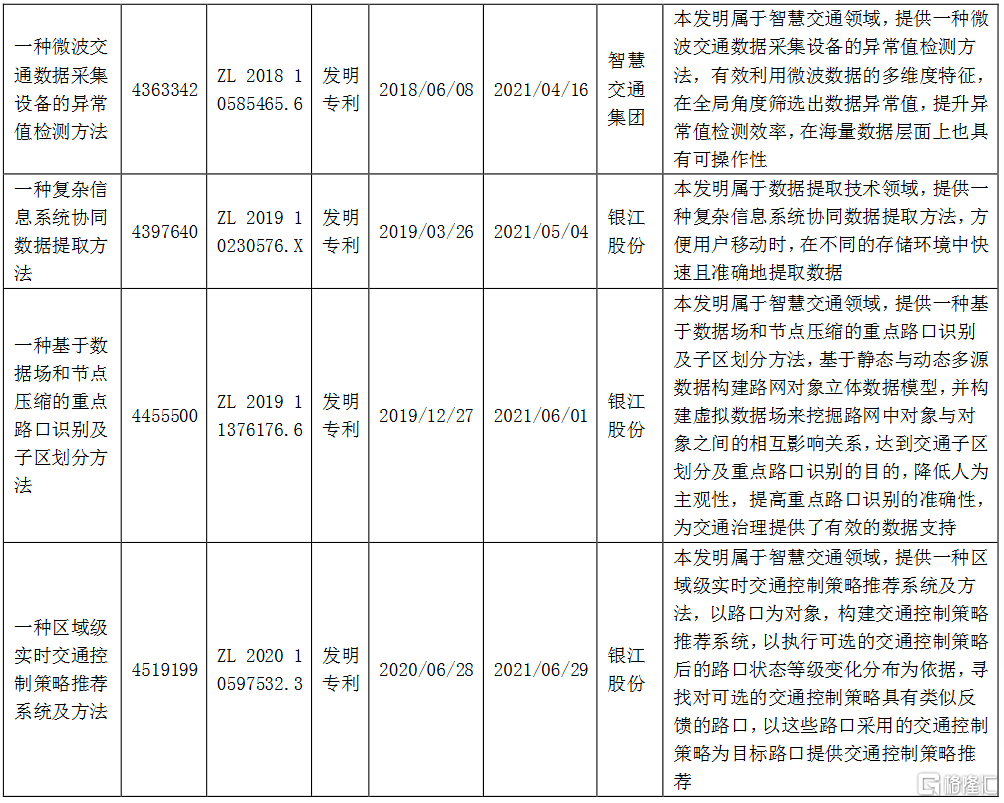 银江股份(300020.SZ)公布,公司及全资子公司浙江银江智慧交通集团有限公司(“智慧交通集团”)于近日收到中华人民共和国国家知识产权局颁发的发明专利证书13份。