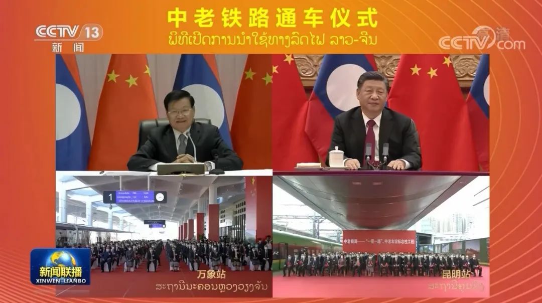 中共中央总书记、国家主席习近平12月3日同老挝人民革命党中央总书记、国家主席通伦举行视频会晤,并以视频连线形式共同见证中老铁路通车。习近平代表中国共产党、中国政府和中国人民对中老铁路通车表示热烈祝贺,向两国建设者致以崇高敬意。16时44分许,中老两国元首下达发车指令,中老铁路通车。