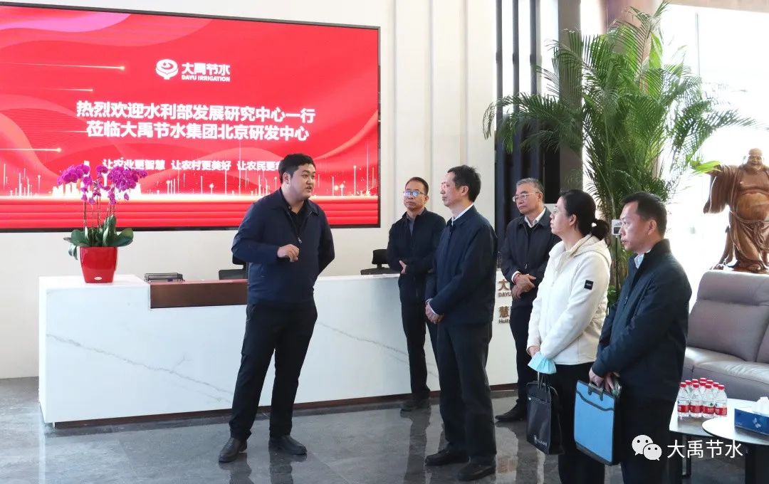 10月19日,水利部发展研究中心主任书陈茂山、人事处处长岳恒、计划发展处处长邵天一、发展战略研究处处长庞靖鹏等一行莅临大禹节水集团北京研发中心参观交流。大禹节水集团董事长王浩宇,首席科学家、研究院院长高占义,高级副总裁、农水集团总裁崔静,副总裁、总规划师高宏,副总裁陶颖等陪同参观座谈。