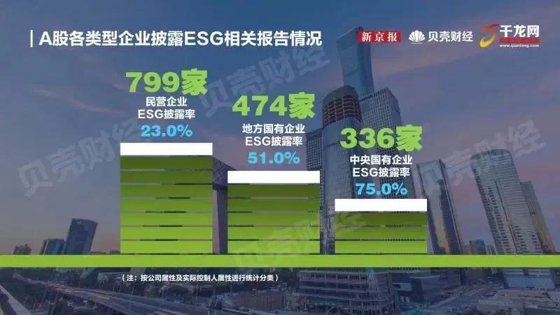 据贝壳财经统计,A股共有1758家公司披露2022年ESG报告(含社会责任报告等多种类型),其中民营企业有799家,占全部披露企业的45.45%,但民营企业披露ESG报告的比例仅为23%,而地方国有企业、中央国有企业的披露比率则分别为51%、75%。