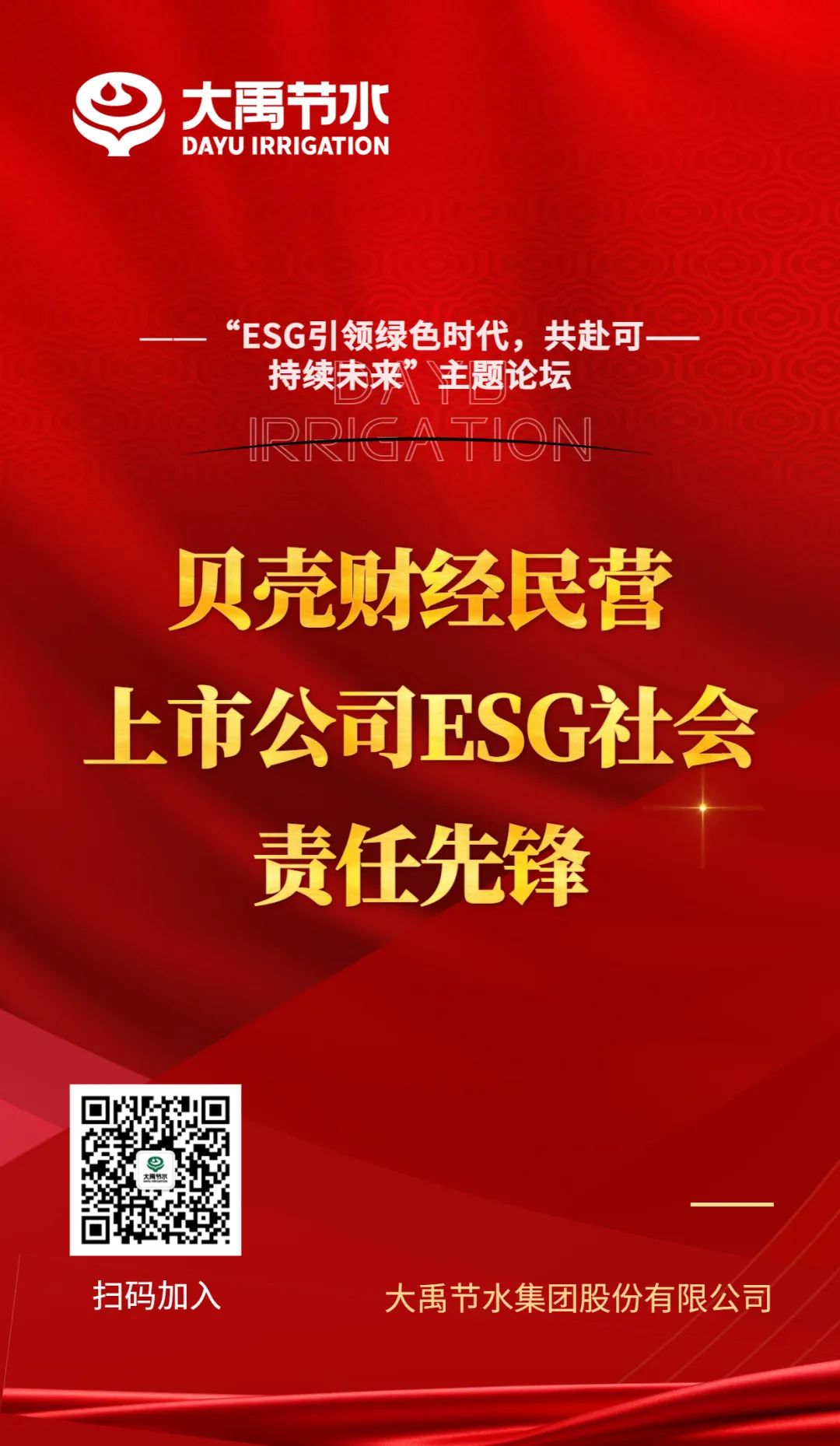 近日,新京报贝壳财经召开夏季峰会“ESG引领绿色时代,共赴可持续未来”主题论坛,贝壳财经联合千龙网发布《贝壳财经民营ESG先锋上市公司》,共有24家企业入选,大禹节水成功入选“贝壳财经民营上市公司ESG社会责任先锋”。