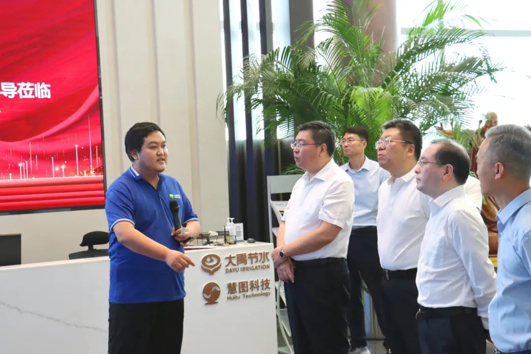 8月7日下午,中国中铁股份有限公司党委常委、副总裁李新生,总经济师赵斌一行莅临大禹节水考察调研,大禹节水集团董事长王浩宇,集团高级副总裁、农水集团总裁崔静等陪同。双方围绕水利工程建设项目、现代化灌区建设、城乡供水一体化、农村污水处理、水利智慧化运营等领域务实合作进行深入交流探讨。