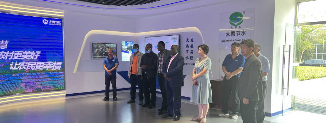 赞比亚农业部部长一行首先参观了大禹节水集团天津总部文化展厅、农业智慧大棚、装配式蓄水罐试验基地、滴灌车间、闸门车间试验基地和研究院实验室、生态环保信息化运维管理中心。在滴管带车间,部长详细询问了滴灌带的生产过程、参数指标和原料情况;在文化展厅,部长对大禹“让农业更智慧,让农村更美好,让农民更幸福”的使命表示非常认可,对大禹不断创新和务实的精神给予称赞。