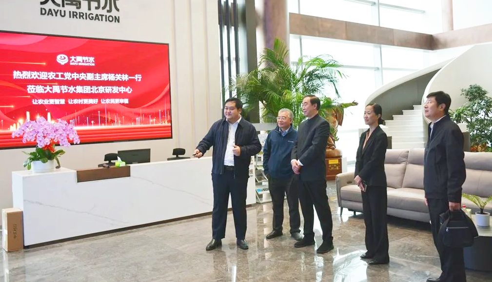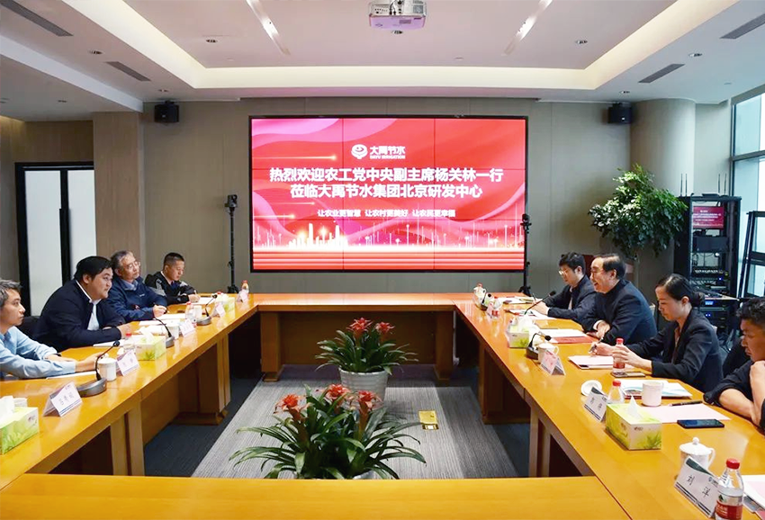 10月12日,全国人大教科文卫委副主任委员、农工党中央专职副主席杨关林一行莅临大禹节水集团北京研发中心调研指导,农工党中央绿色发展工作委员会副主任、大禹节水集团董事长王浩宇等陪同调研。此次调研重点了解了大禹节水集团发展状况,并围绕举办中国节水论坛和参与定点帮扶工作开展座谈交流。