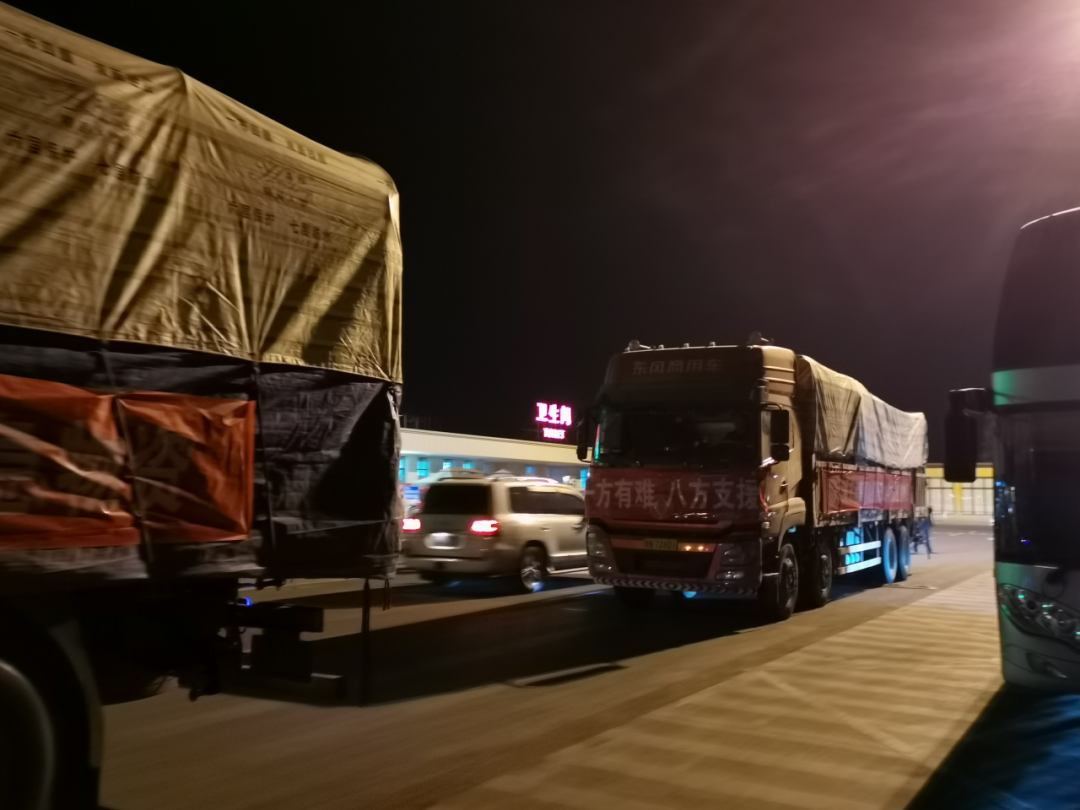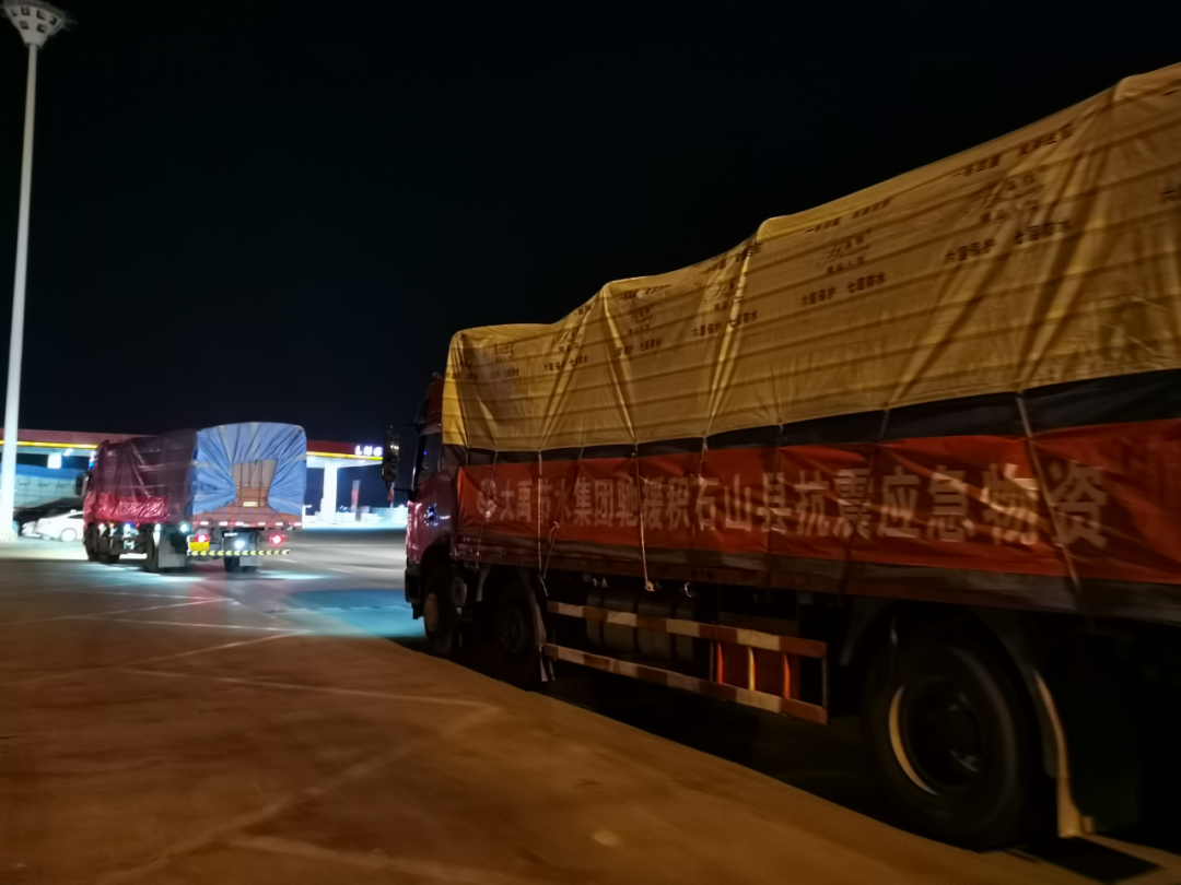 物资装车集合完毕,由太石服务区出发,前往灾区;