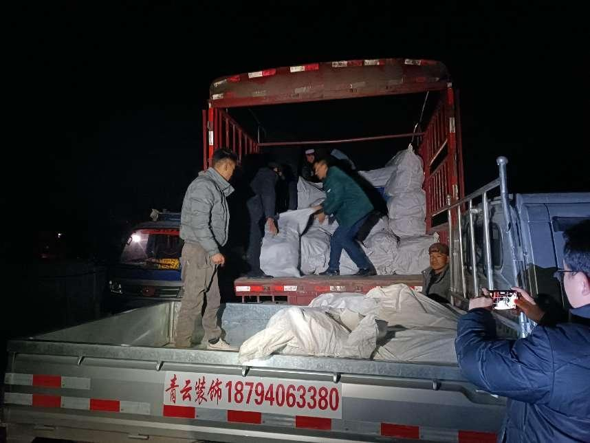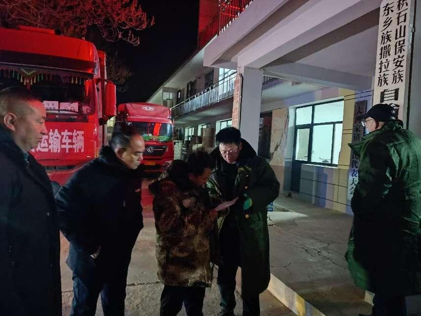 物资到达大河家镇,在镇政府负责人协助下,物资分别被送往康吊村、韩陕家村、周家村、陈家村等。