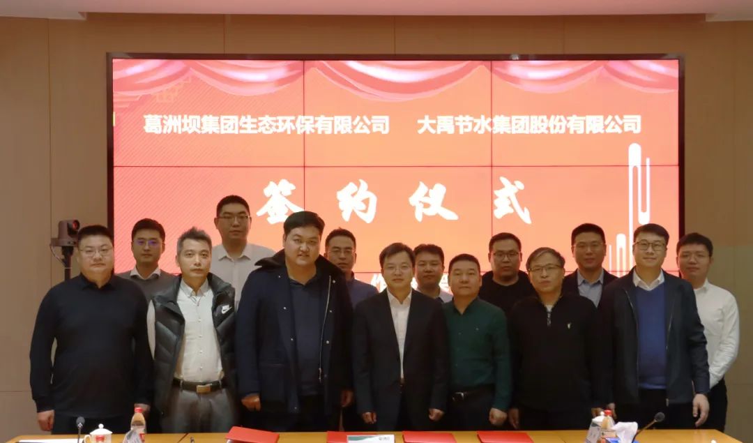 葛洲坝集团生态环保有限公司副总经理杨火冰,副总工程师、市场与投资事业部总经理刘晨,北方区域总经理康巍,办公室副主任轩亮亮,北方区域副总经理韩凯,北方区域投资经理余帅;大禹节水集团副总裁兼董事会秘书陈静,大禹生态环保集团董事长刘佳元、常务副总裁贾林、市场负责人赵越等出席签约仪式。
