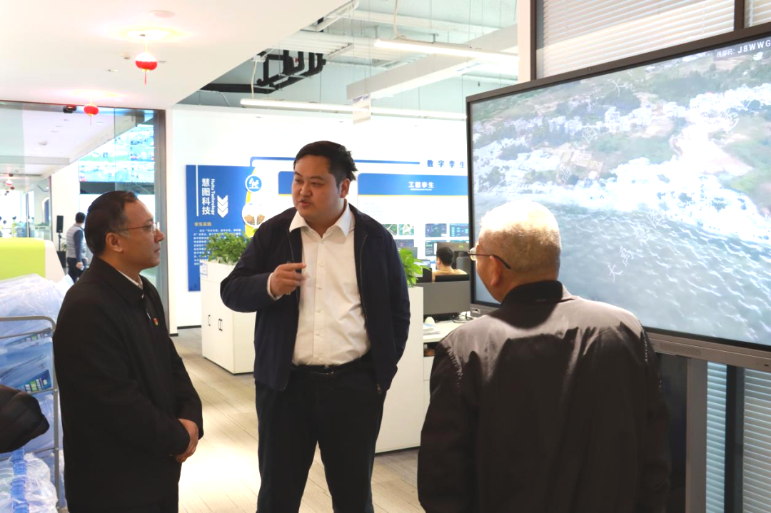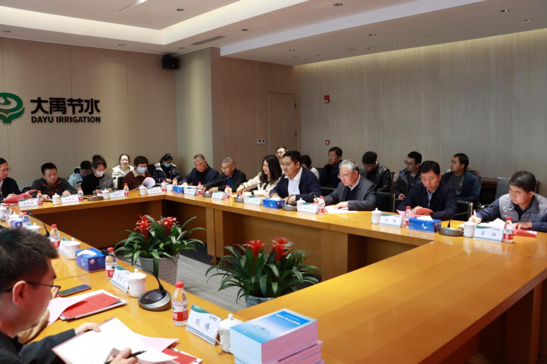 在共同学习习近平总书记的治水思路和李国英部长在全国水利工作会议讲话后,在董事长王浩宇等的陪同下,郝钊领导一行参观了大禹节水集团北京研发中心展厅,并就“三农三水三张网”的全产业链战略布局、水利信息化服务,以及农业节水、城乡供水、农村污水治理经验等方面进行了座谈交流。