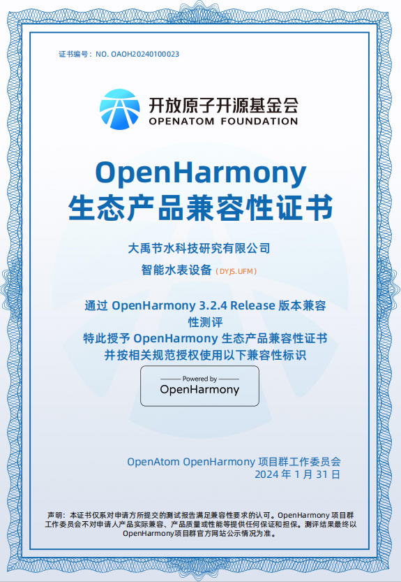 目前,两款水利生态产品均已获得开放原子开源基金会OpenHarmony生态产品兼容性证书,日后将会更广泛运用于相关领域,为推动水利建设和OpenHarmony生态繁荣增添力量。