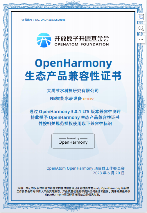 目前,两款水利生态产品均已获得开放原子开源基金会OpenHarmony生态产品兼容性证书,日后将会更广泛运用于相关领域,为推动水利建设和OpenHarmony生态繁荣增添力量。