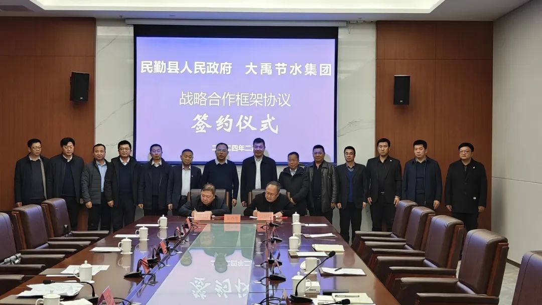 2月22日,甘肃省民勤县人民政府与大禹节水集团在民勤县举办战略合作签约仪式并开展座谈交流,民勤县副县长王建新与大禹节水集团副总裁、西北总公司董事长薛瑞清代表双方签约。民勤县委副书记、县长焦三牛与大禹节水集团总裁谢永生出席会议并讲话。