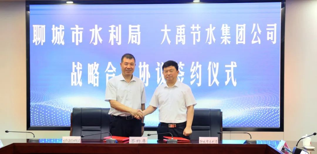 9月23日,山东省聊城市水利局与大禹节水集团在聊城市委党校举行了隆重的战略合作协议签约仪式,聊城市政府办公室二级巡视员刘延勇主持签约仪式,聊城市市水利局局长王会忠与大禹节水集团总裁谢永生代表双方签约。