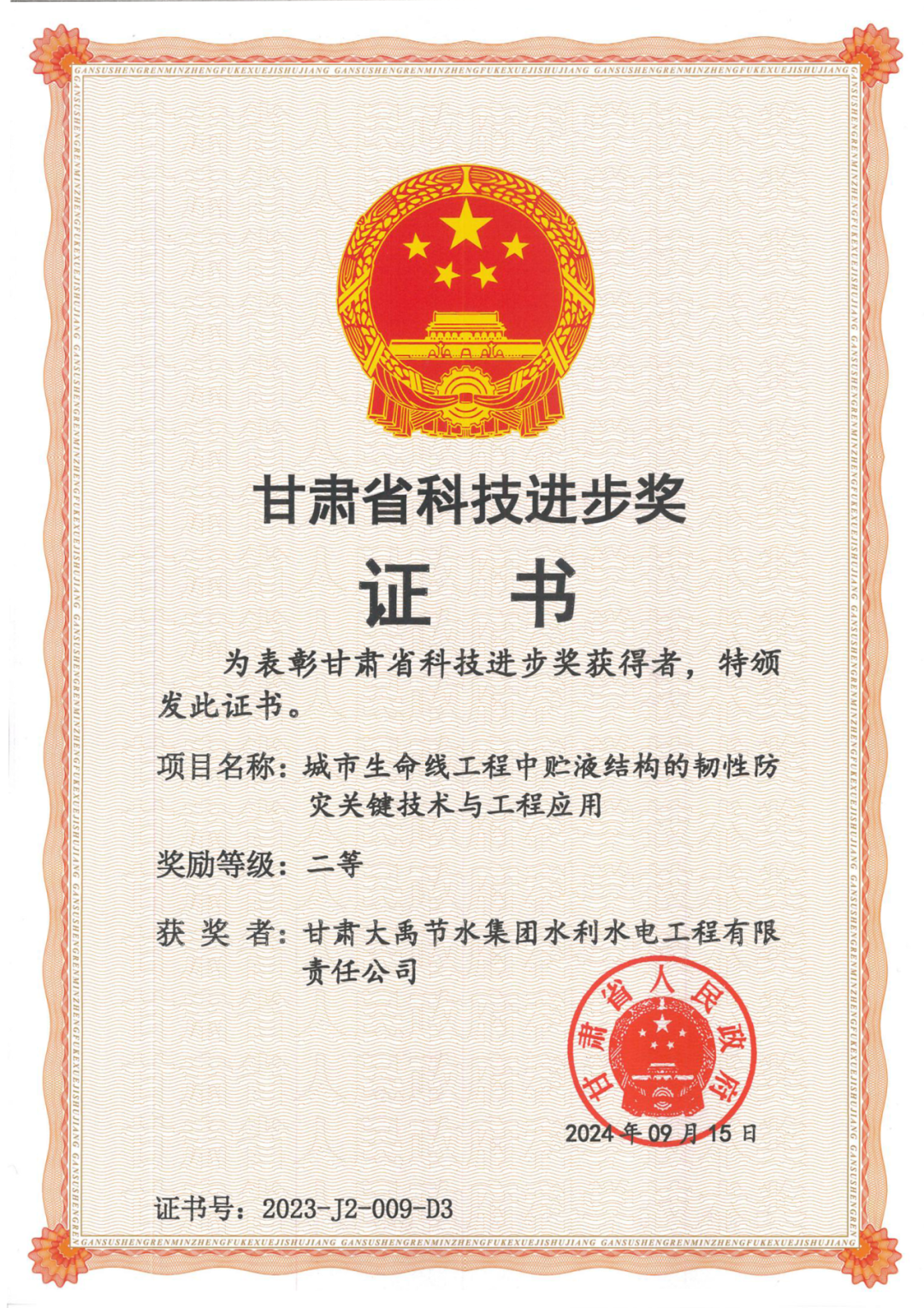 在云南、宁夏、甘肃、山西等省(自治区),大禹节水集团与相关单位合作完成的多个节水、灌溉及防灾技术项目纷纷获得省级科学技术进步奖,赢得了业界的广泛赞誉。