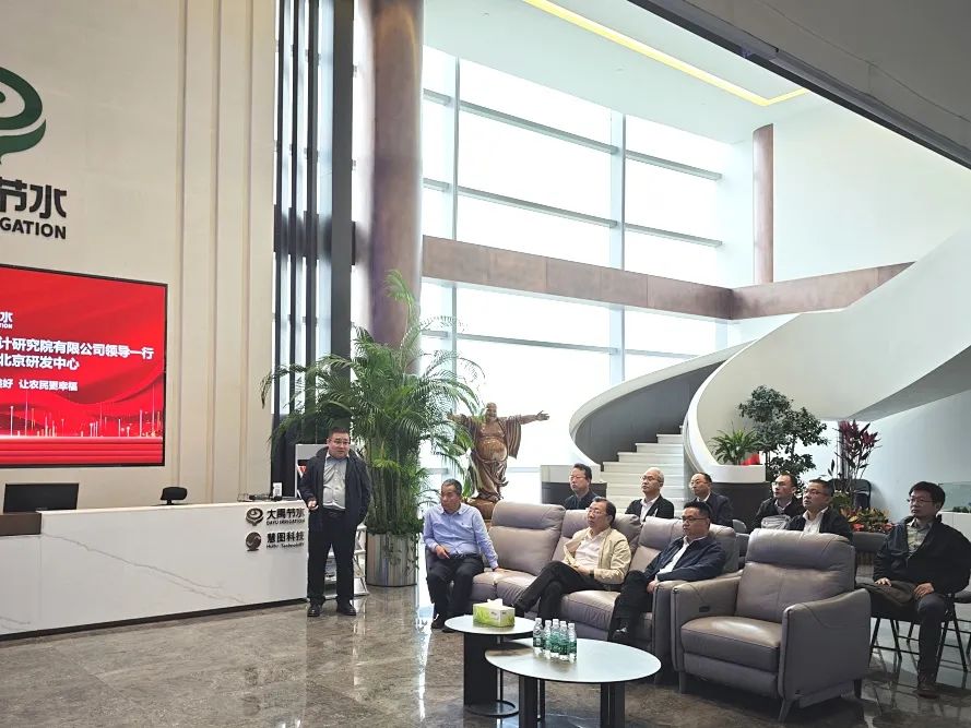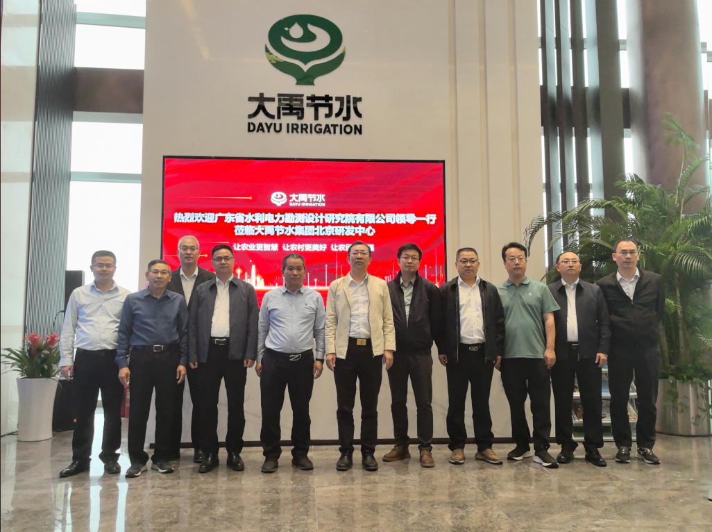 4月18日,广东省水利电力勘测设计研究院有限公司党委书记、董事长卢宝光一行莅临大禹节水集团北京研发中心考察座谈。大禹设计集团董事长严文学、大禹慧图集团常务副总裁廖华轩等陪同。