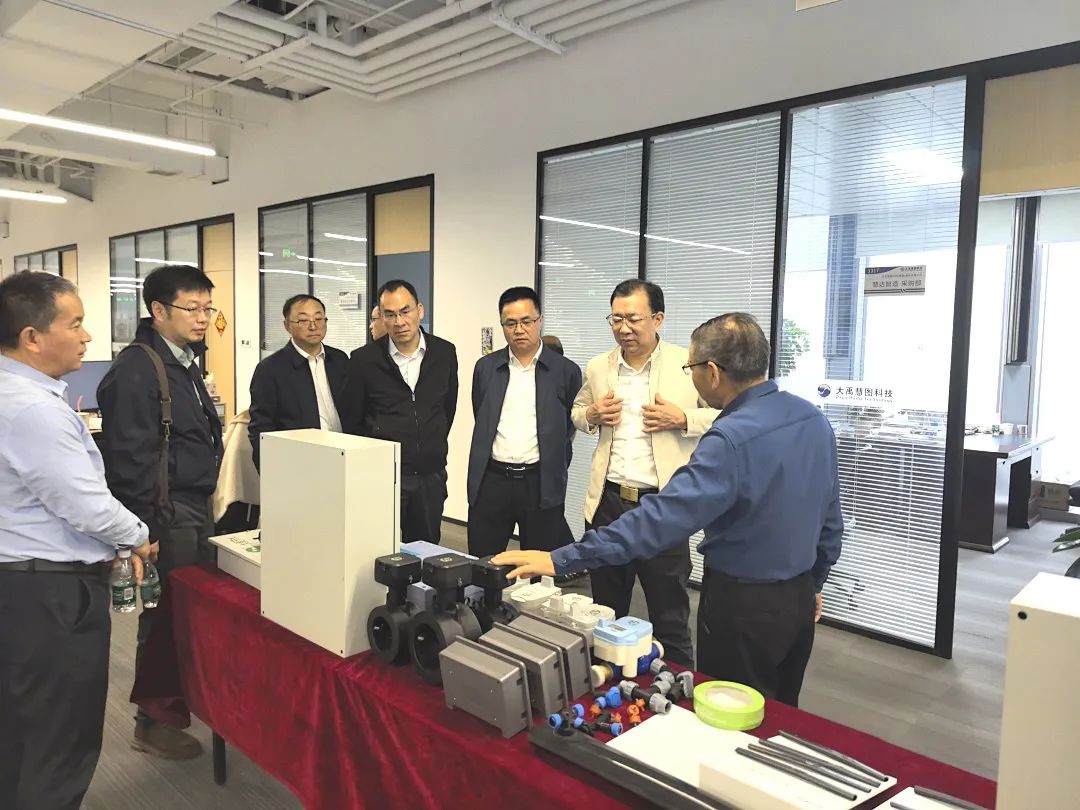 在大禹慧图科技,卢宝光董事长一行听取了大禹节水在水利数字孪生、防洪抗旱减灾、智慧农业等领域数字化解决方案的汇报,考察了大禹节水前沿的硬件产品。