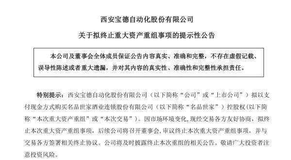 至此,收购又陷入了迟迟等不到“结果”的局面,一直到今年11月2日,作为收购方的*ST宝德宣布停止收购。