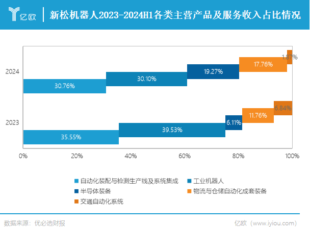 新松机器人在2024年上半年的主营业务营收情况显示了其在机器人产业链的多元化布局和市场适应能力。物流与仓储自动化成套装备业务和半导体装备业务在报告期内表现强劲,尤其是半导体装备业务。